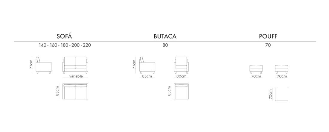 La Colección Adra está compuesta por tres elementos principales, sofá, butaca y pouff.
