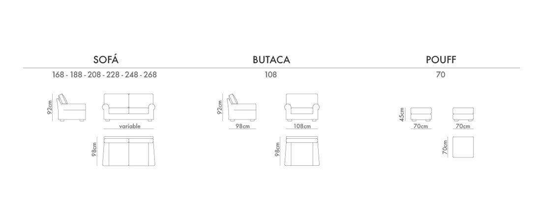 La Colección Badem está compuesta por tres elementos principales, sofá, butaca y pouff.