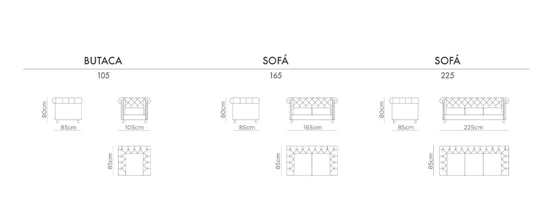 La Colección Chester está compuesta por tres elementos, dos sofás y una butaca.
