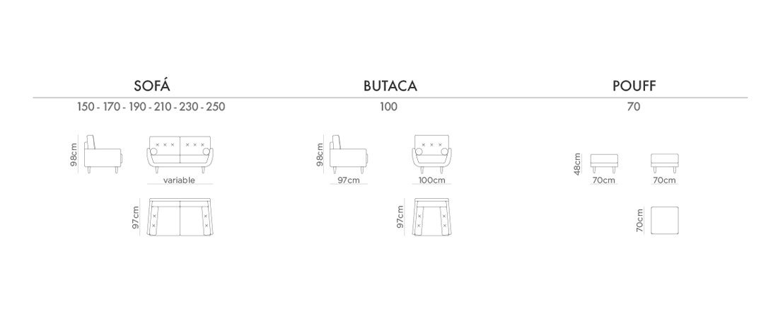 La Colección Denver está compuesta por tres elementos, sofá, butaca y pouff.