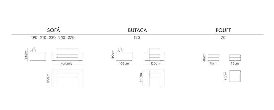 La Colección Grove está compuesta por tres elementos, sofá, butaca y pouff.